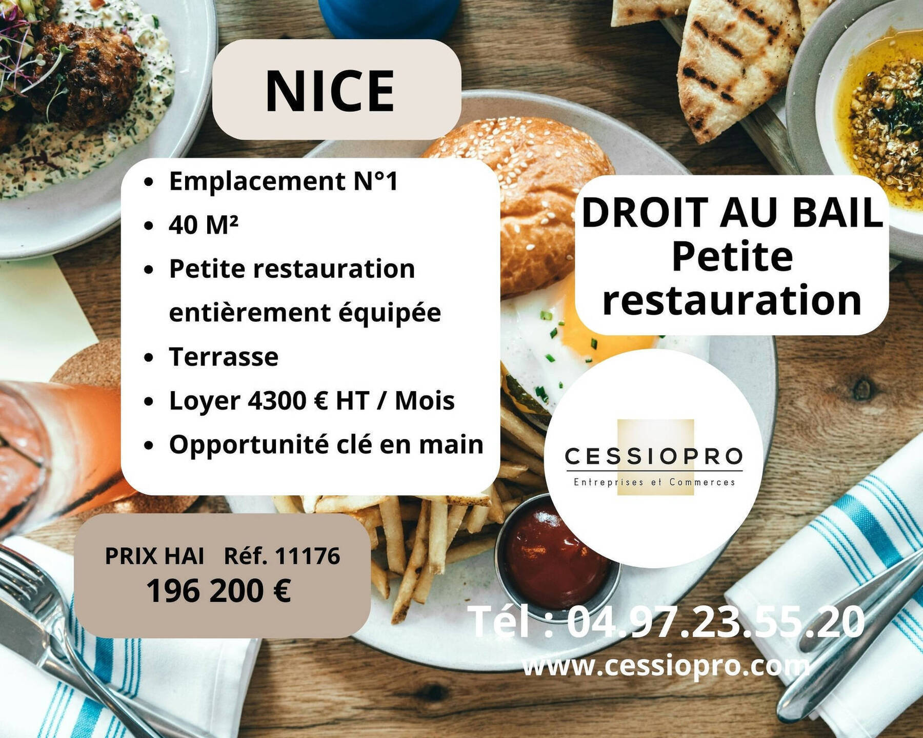 Droit au bail Petite restauration entièrement équipée Emplacement no1 à Nice À Vendre : Droit au bail Petite restauration entièrement équipée Emplacement no1 à Nice - Situé sur un emplacement premium à fort flux piéton, ce local dédié à la petite restauration a été entièrement refait à neuf début 2025, avec 80 000 € de travaux et 40 000 € de matériel neuf. L’ensemble est clé en main, prêt à être exploité immédiatement. Le local se prête parfaitement à un concept de restauration à thème et offre également la possibilité d’une activité bar. Son agencement optimisé et sa visibilité en font une opportunité rare en centre-ville. Caractéristiques principales :