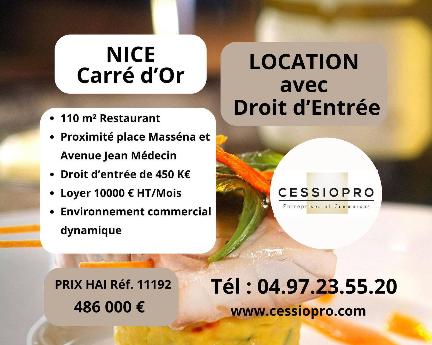 LOCATION AVEC DROIT D’ENTRÉE POUR UN MAGNIFIQUE RESTAURANT - NICE CARRE D’OR