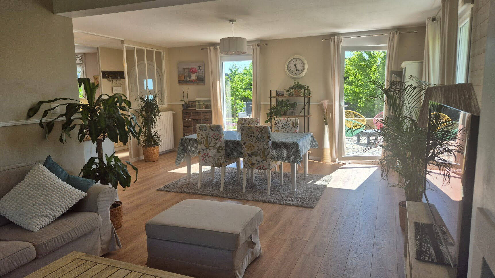 Baignée de lumière, la pièce de vie de 60 m² est prolongée par une terrasse sans vis-à-vis. L'espace salon dispose d'une cheminée fonctionnelle. Au calme et en même temps proche de tout, elle dispose de 4 chambres de belle taille dont une suite parentale permettant une vie de plain pied.