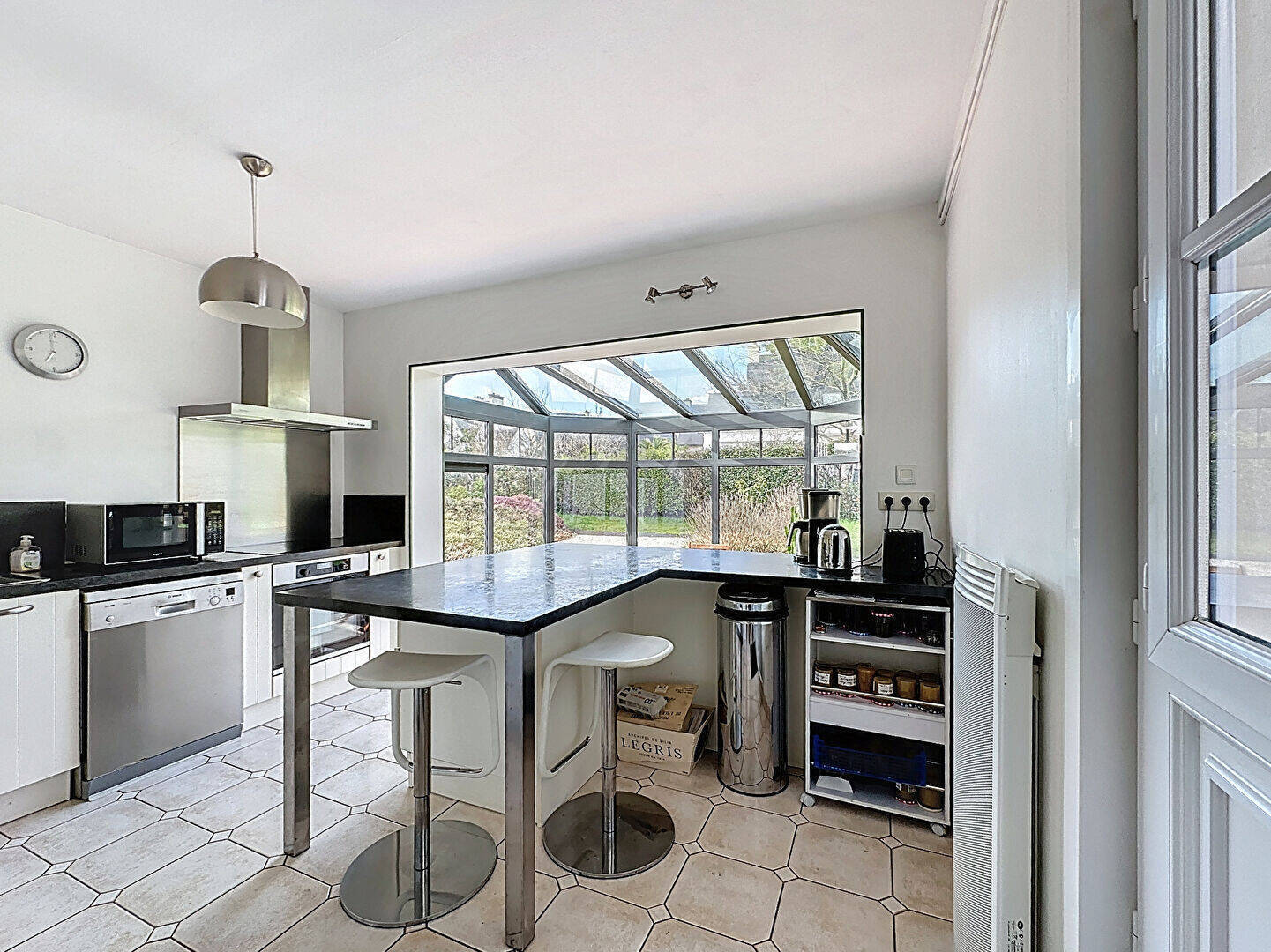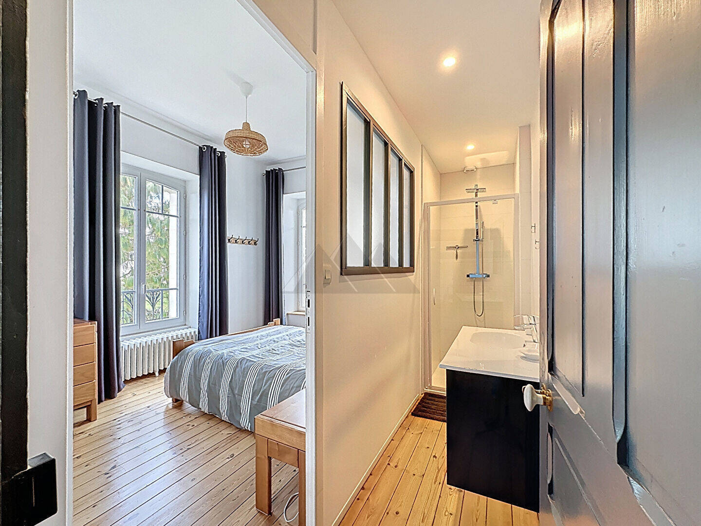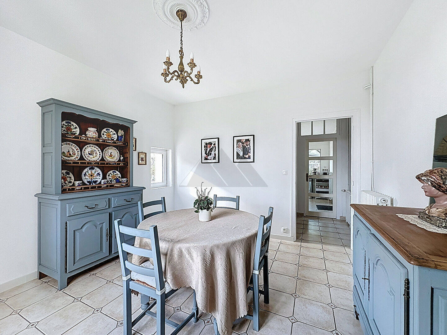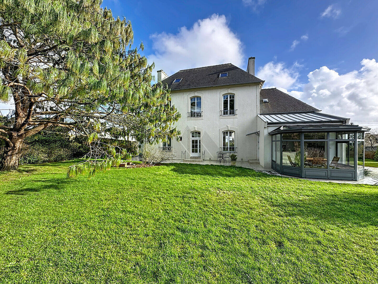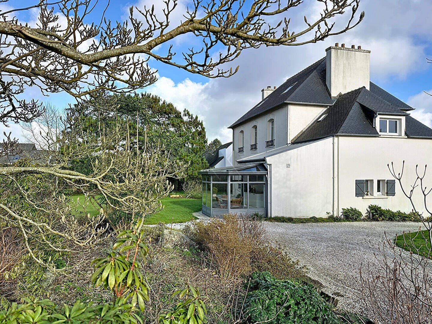 Plougastel-Daoulas, au centre bourg, les commodités à pied, magnifique et vaste maison bourgeoise des années 30 au charme et au caractère d'antan. Elle a gardé toute son authenticité de par ses hauteurs sous plafond, ses planchers en bois à l'étage, ses cheminées, ses grandes ouvertures, ses portes en bois et ses embrasures de fenêtres. 5 grandes chambres dont une rez-de-chaussée avec salle de bains, un bureau, 3 pièces d'eau, un salon séjour d'environ 30 m² avec cheminée, une salle à manger d'environ 20 m², une cuisine équipée et aménagée donnant sur le jardin par une verrière en aluminium confèrent à cette bâtisse un caractère unique. Jardin clos arboré et plat exposé sud de +1300 m² avec portail électrique et dépendance pour garage. Vue mer lointaine de l'étage.